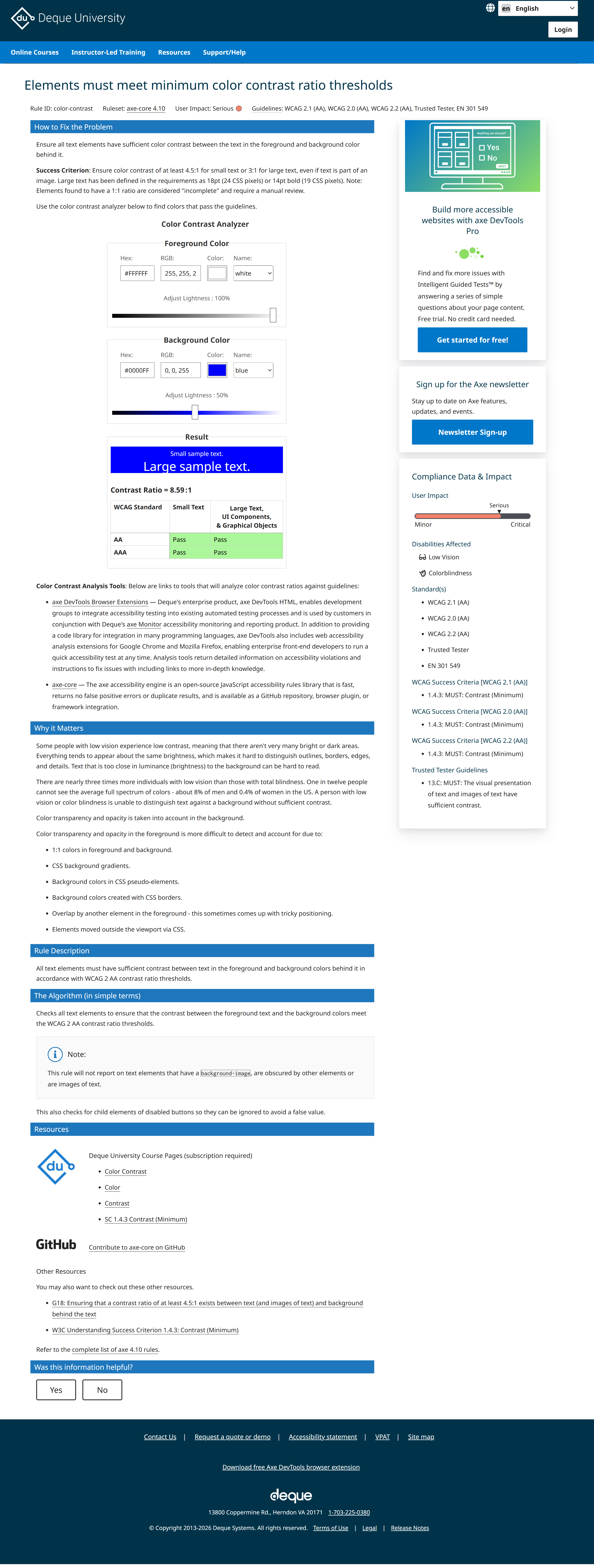 With links to the Deque website