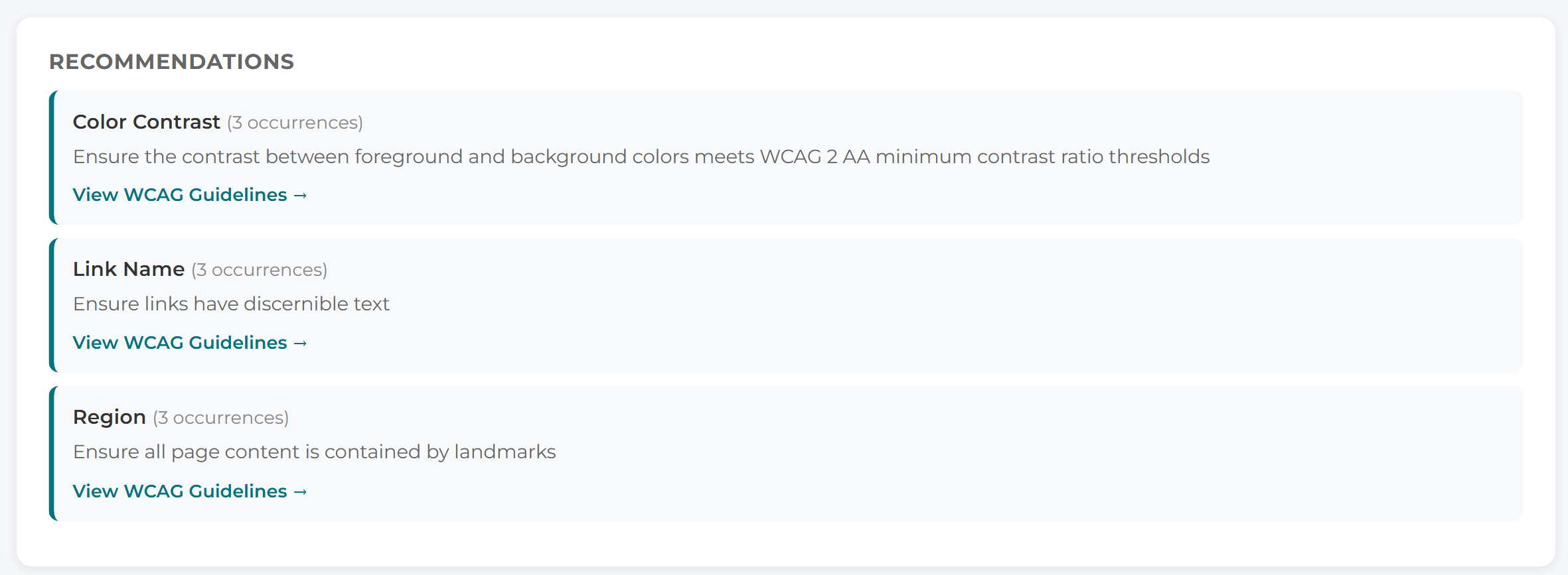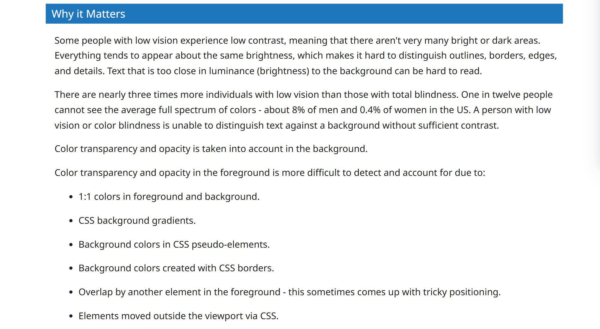 - Color contrast failures in complex visual designs